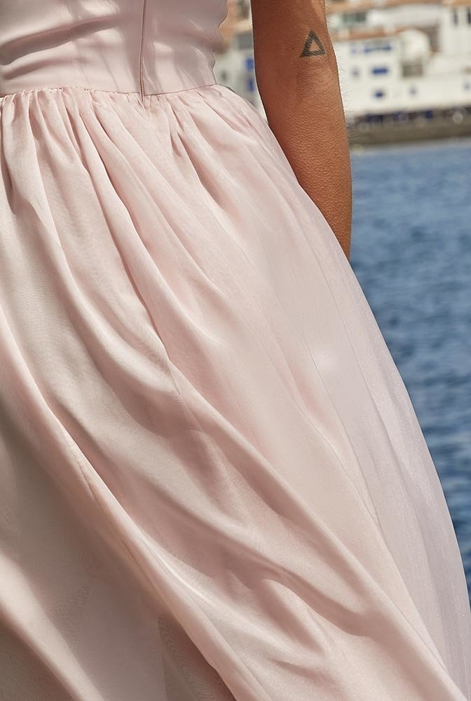 The dress looks lovely :) I really recommend :) The only minus or maybe plus? :) of this dress is that it is very long :) I, with a height of 171.5 and having a heel height of about 9 cm, the dress continued to lie on the ground :) And when dancing at a wedding is unfortunately a minus, because someone will step on it and can destroy the dress :)