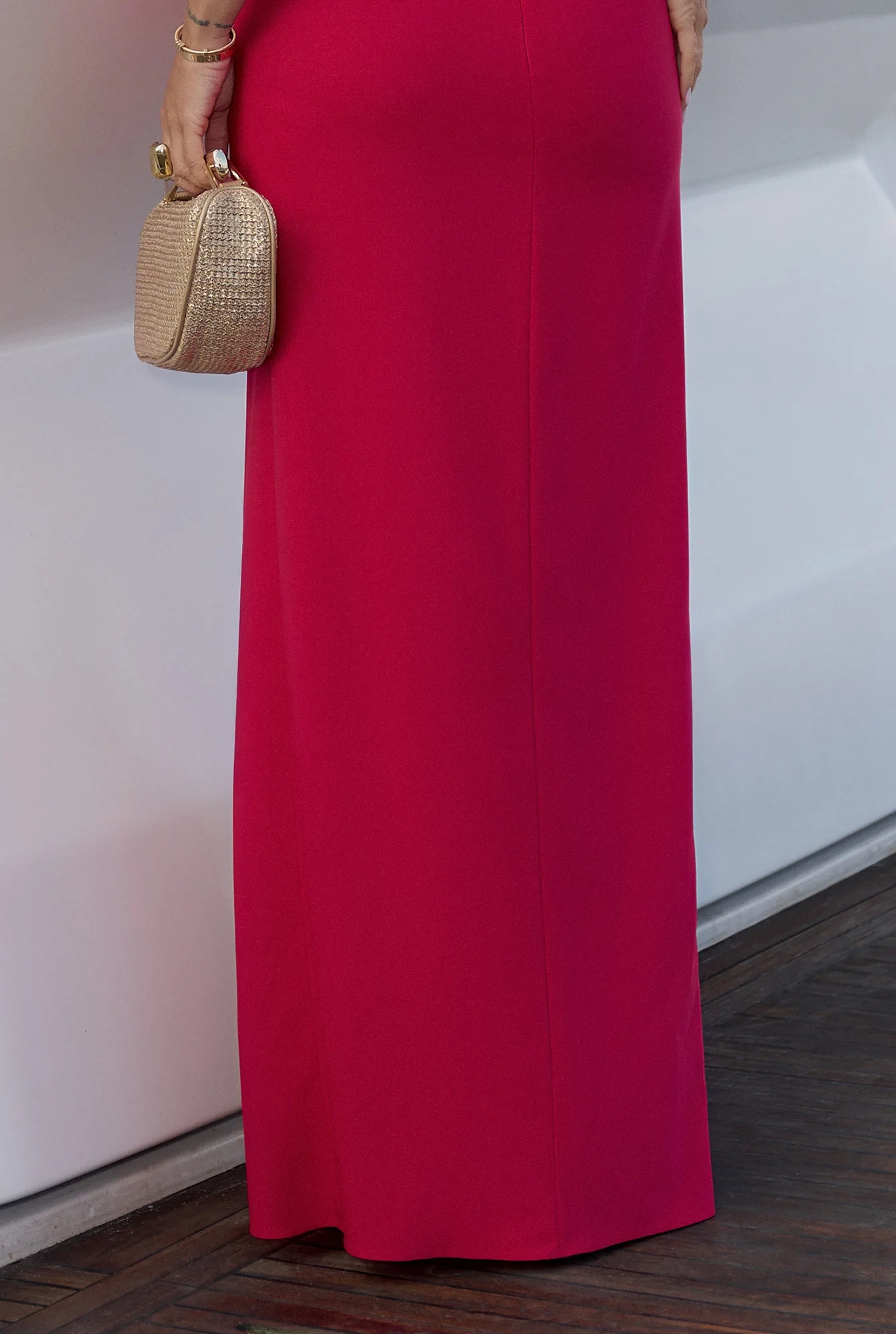 • Maxi dress with a boned corset and pleated front. The corset features an elastic band with hooks to support the bust. Design with lace-up back and zipper closure. The dress includes detachable straps. Interior finished with a viscose lining.