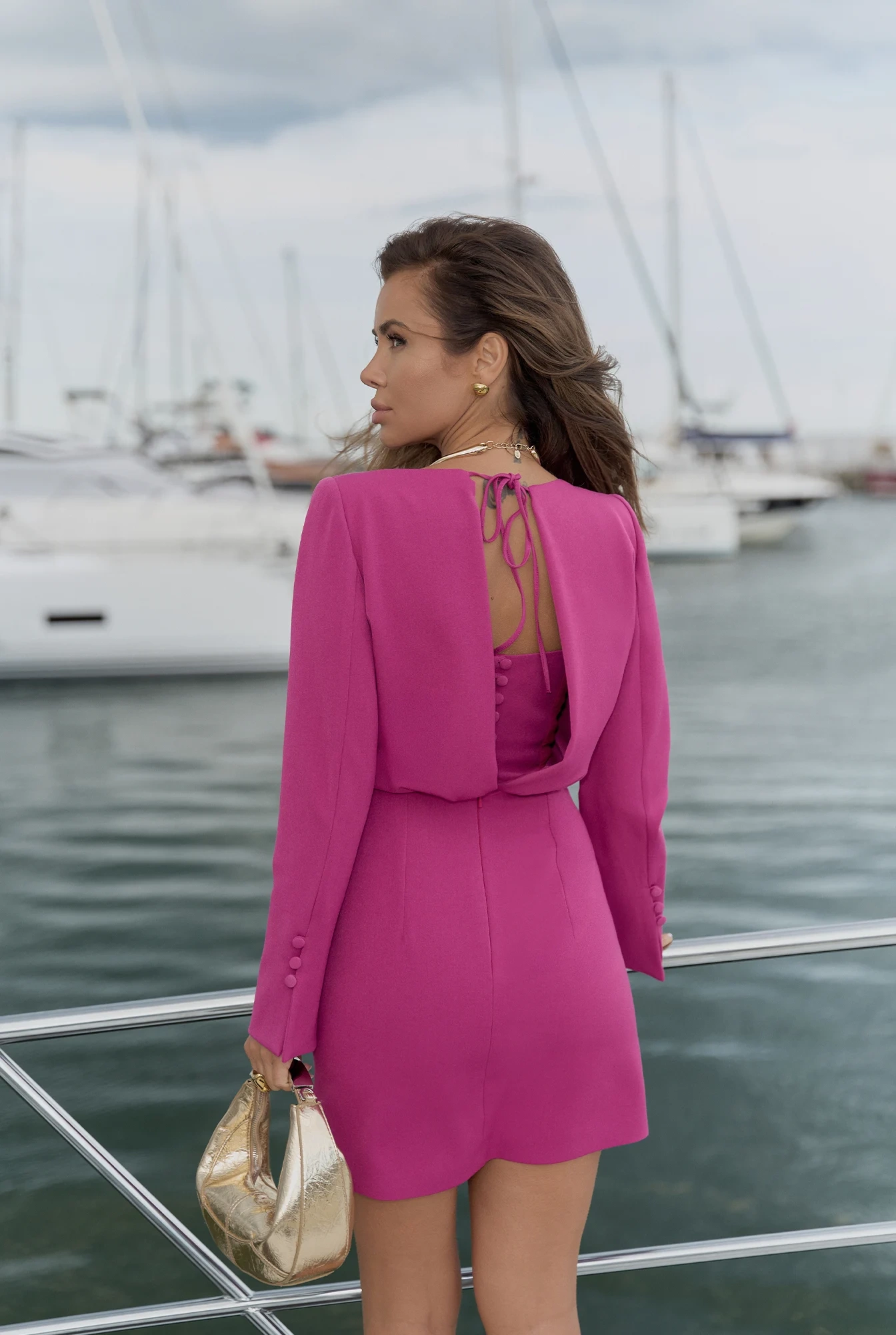 Zulina – pink mini dress with tie-neck
